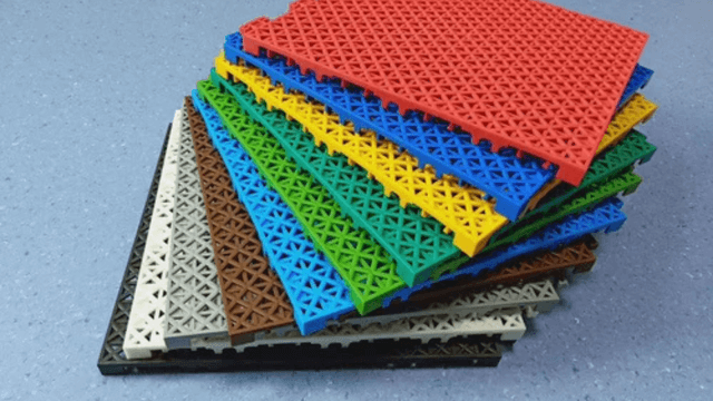 Lantai olahraga berbahan dasar polypropylene (PP) dengan sistem sambungan interlock, praktis dipasang, kuat, dan tahan lama.